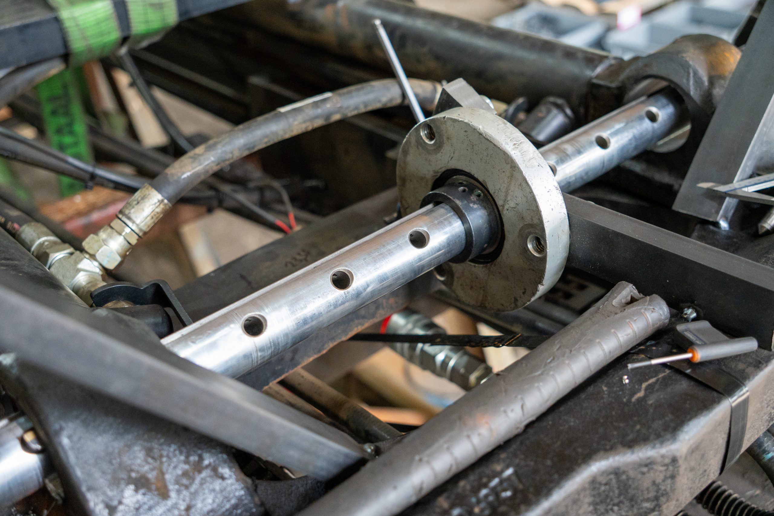 De verbinding tussen de mast en de truck was door slijtage versleten, waardoor de mast begon te rammelen. Met onze mobiele lijnboorinstallatie hebben we de versleten gaten nauwkeurig uitgekotterd en voorzien van nieuwe pasbussen. Hierdoor is de verbinding weer spelingsvrij en functioneert de mast weer zoals het hoort: sterk, stil en betrouwbaar.